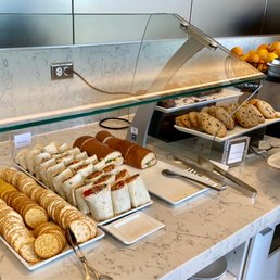This review is the for lounge near E4. I read some reviews of the lounge and got a sense that this lounge wasn't too impressive but my fiance and I were fairly impressed. The food was decent and tasty. We liked the ham and cheese sandwiches. They had a build your own taco bar area which we ended up using the filling as like a chip dip. There was a bar that had complimentary alcoholic drinks like beer, wine and some hard liquor. I'm more of a cocktail person so I didn't drink anything since you'd have to pay extra. I did use their espresso machine and made a latte. It was fairly spacious inside with seating and single couch-like sofas with outlets. We had 2 one time passes complimentary for the both of us, but I wouldn't spend $59/person for a pass. I would expect a bit more if I had paid $59/person to visit.